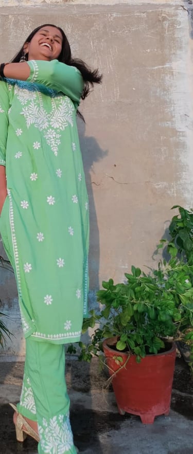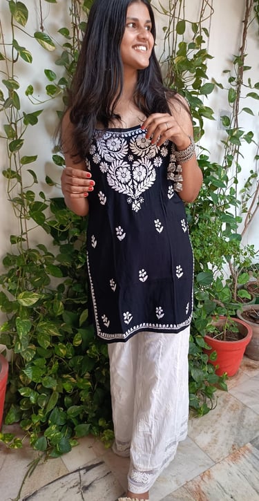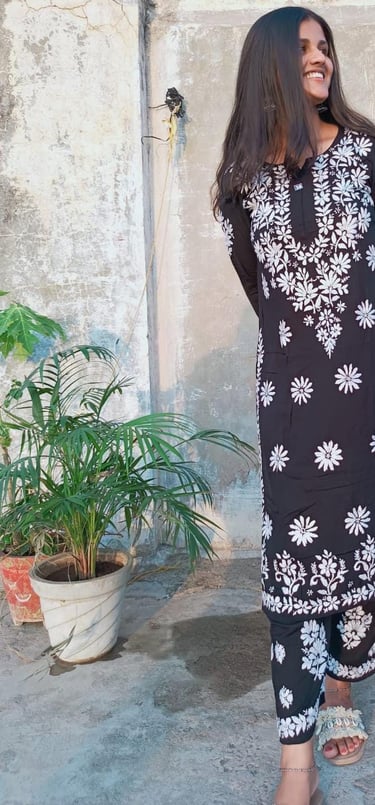 Caption- 🛍🛍 🚫🚫 This Elegant Kurti Set Has Been Created With Delicate White Colors Thread🧵 Work Creating Floral Patterns. Intricate And Graceful Stitches Have Been Used To Adorn The Chikan Kurti Set.