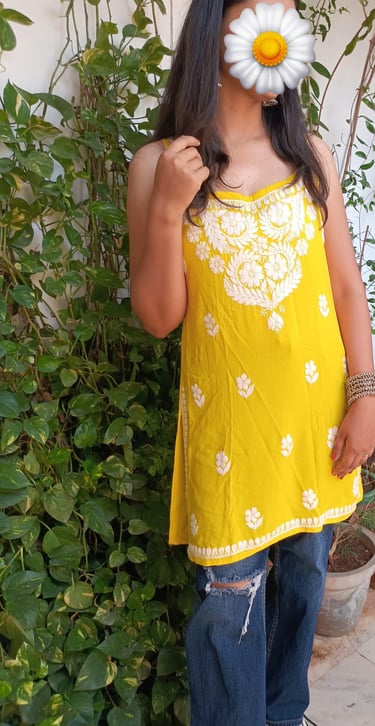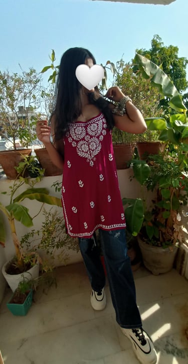 short kurtaCasual Wear Strap Short KurtiCloth- ReyonLength-3️⃣2️⃣"Size- 32-42Extra Color-4 Colors🌈🌈 Caption- 🛍🛍 🚫🚫 This Elegant Short Kurti Has Been Created With Matching Colors Thread🧵Work Creating Floral Patterns.