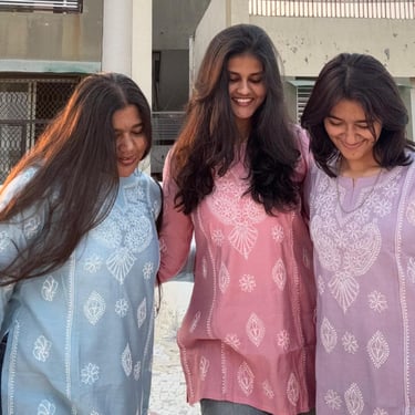 Cord set intricate with beautiful and very fine chikankari work on cotton kurti with stretchable pant