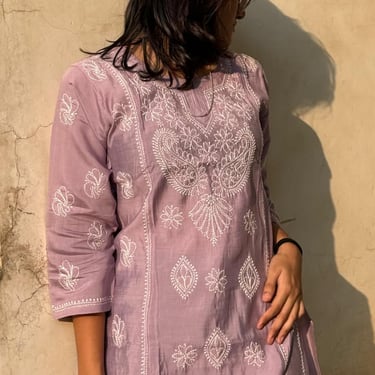 Pure Cotton Pant kurti set , intricate with lucknawi chikan work , only white Size:38,40,42, 44,46