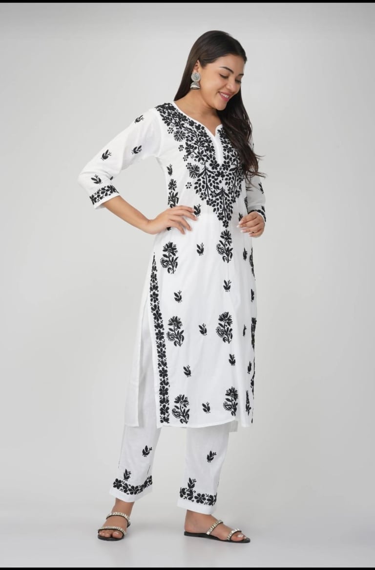 Pure Cotton Pant kurti set , intricate with lucknawi chikan work , only white Size:38,40,42, 44,46